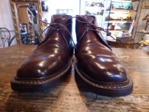 こんにちは東です。 Alden(オールデン)のチャッカブーツをお預りしました。 ややスクエアのつま先