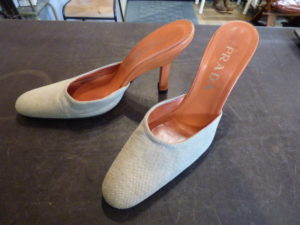 PRADA(プラダ)のヒールサンダルをお預かりしました。 アッパーが生地&珍しいヒールデザインのサン