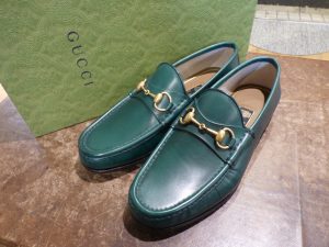 GUCCI(グッチ)のメンズのビットローファーを常連様がお持ちくださいました。 初めて見る緑のビット