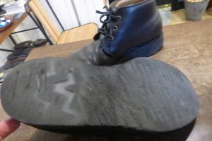 安藤製靴チャッカブーツの靴底をビブラム1276オリーブでカスタムオールソール交換修理