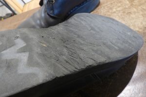 日本を代表する登山靴メーカーです。 靴底の修理のご依頼です。 純正ソールとの事ですが、擦り減りが進行していることもあり「オールソール交換」で靴底の作り変えをご希望されました。