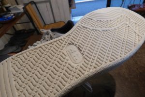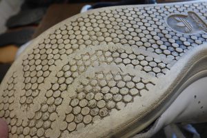 経年劣化でソールの一部が硬化し、ひび割れ始めています。