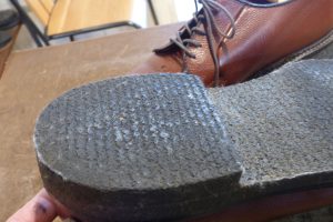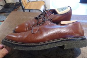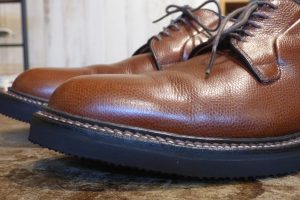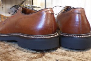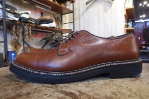 木型はバリーラストで、靴底はプランテーションソールです。 まださほど擦り減ってはいませんが、 プランテーションソールは独特な構造で お客様はクレープ(生ゴム)のソールから別ソールへの変更をご希望されました。 仕上がりのイメージをお持ちだったので、ご希望の仕様でカスタムをさせて頂きます。 <after>