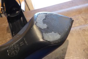 先が細いので、よりつま先部が擦り減りやすい傾向があります。