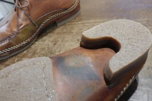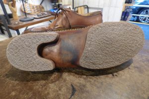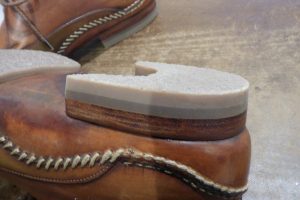 元のソール部のラバーの範囲でソールを作り、一周「マッケイ縫い」で縫っているので剥がれることはありません。
