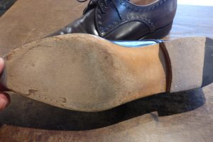 なのでラバーソールにマッケイで縫う場合はラバーソールに溝を掘り、縫い糸が沈むように加工をします。