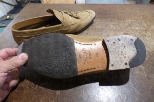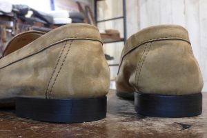 純正のレザー&ラバーのカカトが擦り減ってきているので、