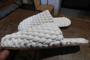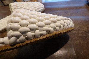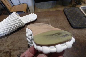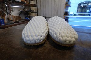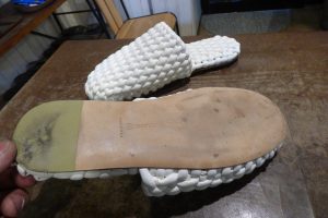 おそらくメンズサンダルと思われます。 白のレザーで編みこまれたサンダルで履かれる前にお持ちくださり、 靴底の補強のご依頼です。 薄いレザーソールが使用されており、 ヒールがないフラット形状となります。 このまま履くと早い段階で靴底やアッパーにダメ―ジが広がるのが見えているので、あらかじめ補強をご希望されました。 <after>