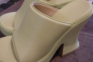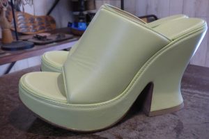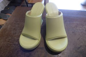 鮮やかな色合いの厚底サンダルです。