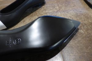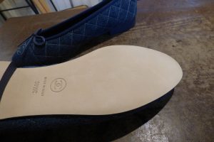 黒のレザーソール面を補強させていただきます。