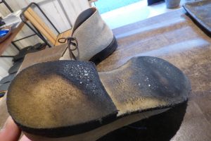 現在、生ゴム素材の「クレープソール」ですが、別ソールへの変更をご希望されました。