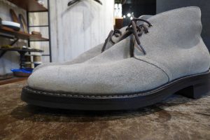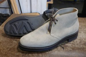 スエードのアッパー&ラバーソールの組み合わせなので、雨の日でも使用できる靴に仕上がりました。