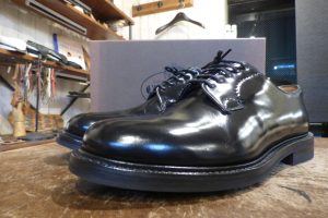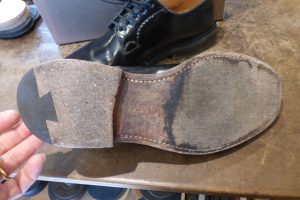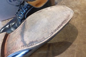お客様は革靴に不慣れな模様で、レザーソールの滑りやすさが苦手との事でした。