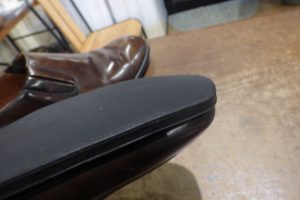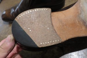 靴底の修理のご依頼です。 カカトが擦り減ってきたので、交換修理のご依頼と、 純正のレザーソールは今以上擦り減らないように補強をご希望されました。 しっかりとメンテナンスをさせて頂きます。 <after>