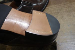メンテナンスの完成です。 元のようにレザー&ラバーのラスターで「トップリフト交換」をし、 ソール面は「ハーフラバー」で補強をさせていただきました。 これで安心して履いていただけます。 綺麗に仕上がるよう丁寧に加工をさせていただきます。店頭だけでなく郵送でも修理をお受けしています。