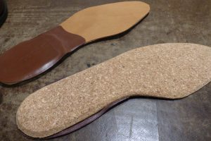 靴の緩にあわせ、裏面はコルクで厚みを足しています。