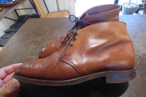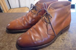 CROCKETT&JONES(クロケット&ジョーンズ)のチャッカブーツをお持ちくださいました。 靴底の修理のご依頼です。