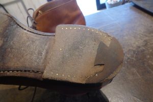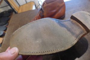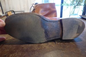 純正の状態で カカトが擦り減り、 レザーソール中心部も穴が開く手前の状態で薄くなっているので これを機に張り替えをご希望されました。 <after>
