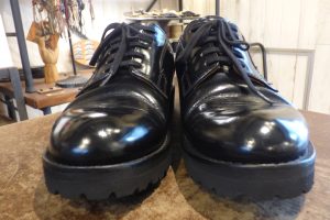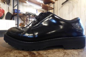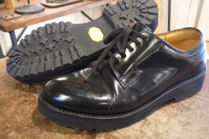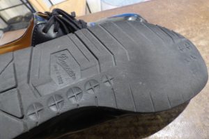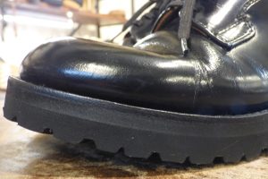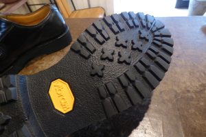 使用したのは「ビブラム528Kソール」の黒です。 タンクソールで一見重く見えますが、スポンジ素材なのでとても軽量感がある靴に仕上がります。