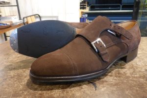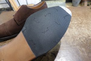 高級紳士靴を多数お持ちの常連様で、今まではつま先をヴィンテージスティールのみの補強でしたが、ソール面の補強をしたところ、気に行っていただけたので