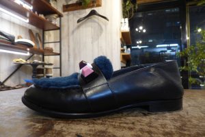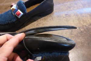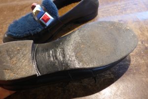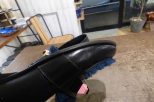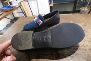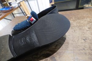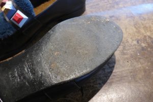 レザーソールのままで履かれているので、擦り減らないように&滑らないように補強をします。