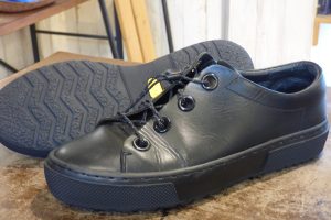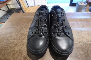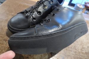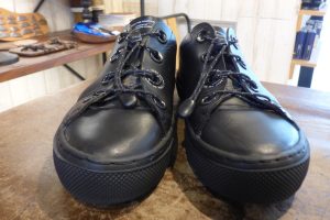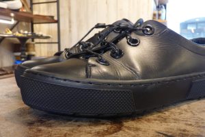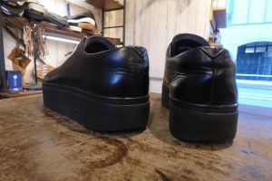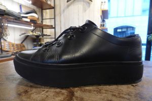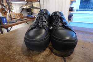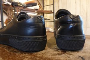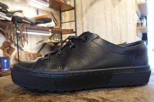最近カップソールのスニーカーはほぼこちらのソールを使用しています。 元のようにサイド部は「オパンケ縫い」という方法で1周縫っています。 デザイン、厚みは変わりますが違和感はないと思います。 これで安心して履いていただけます。 フットザコーチャーのこの靴に関しては今後同様の修理でご対応出来ると思います。