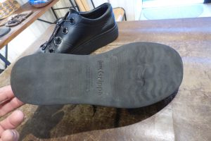 同じソールの入手は不可能なので、ソール交換をするには別のカップソールで張り替える必要があります。 ただ用意できるカップソールがこちらの靴に合うとは限りませんが、今回は修理可能と判断をしお受けさせていただきました。 ただ今のグリッパソールはかなり厚底なので、これは再現できず、厚みは今より薄くなります。 しっかりとメンテナンスをさせていただきます。 <after>