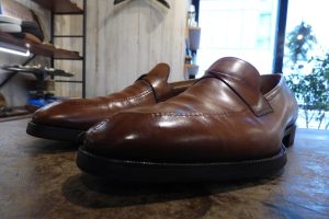 GAZIANO&GIRLING(ガジアーノ&ガーリング)の名作ローファー「アンティーブス」をお持ちくださいました。 靴底の補強のご依頼です。