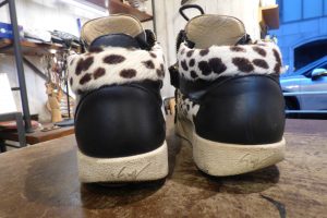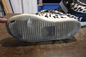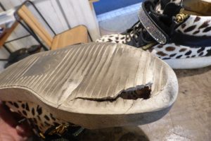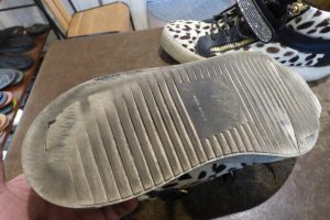 人昔前まではこの手の靴のソール交換は様々なパーツを繋いで修理をしていましたが、現在は靴の構造のよっては違和感がなくすニームに交換修理が出来るようになりました。