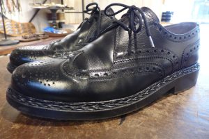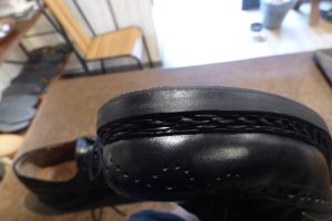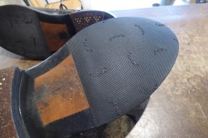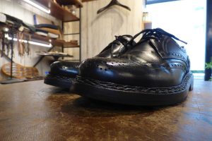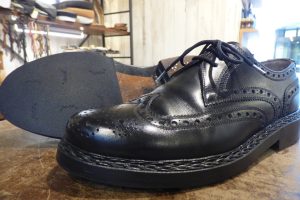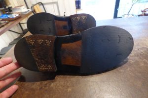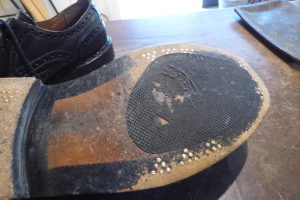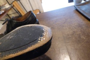 擦り減っていたレザーソールつま先部は「革で埋めて」厚みを戻してから補強をしています。 これで安心して履いていただけます。 お好みであれば今回のハーフラバーに加え、金属製の「ヴィンテージスティール」の取り付けも可能です。 これで安心して履いていただけます。店頭だけでなく郵送でも修理をお受けしています。