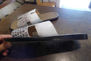 カカトもレザーはとても滑る&擦り減るので、こちらも補強をします。