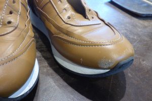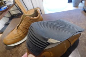 カカトの反り上がりがある分、修理が難しいので出来るだけ違和感がないようにします。