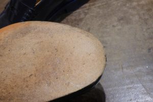 お客さま好みの「ヴィンテージスティール」でつま先を補強しました。