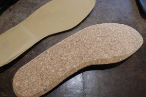 靴の緩さに合わせ、コルクで厚みを足しています。