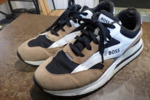 HUGO BOSS(ヒューゴボス)のメンズスニーカーをお持ちくださいました。 アッパーはレザーのスニーカーで
