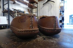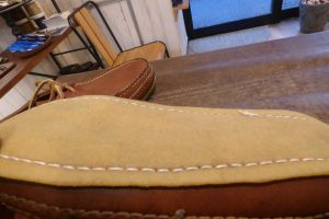 J.L.COOMBS(J.L.クームス)を埼玉県の常連様より郵送でお預かりしました。 ラッセルモカシンより歴史が古いアメリカのメーカーですが、現在は生産していないものとなります。 アローモカシンと同じく伝統的なハンドメイドのモカシンシューズです。 まだまだ良好の状態で 靴底の補強のご依頼です。 ソールがない伝統的なモカシンシューズで、現代の路上で履かれるには実用的ではないので ソールを取り付けることとなりました。 過去にアローモカシンと多数、ソール加工をしましたが、この場合は「クレープソール」か「ビリュケンソール」を使用するのがベターです。 お客さま好みに加工をさせて頂きます。 生ゴム素材の「クレープ」をご選択されました。