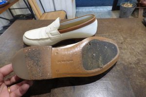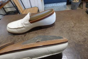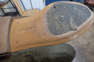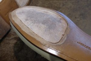代わりにレザーで埋めてソールの厚みを戻した後、