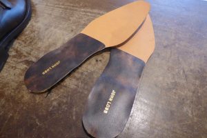 元のインソールをベースに、靴の形に合わせて全体レザーのインソールを作りました。