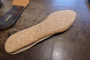 靴の緩さに合わせ、裏面はコルクで厚みを足しています。