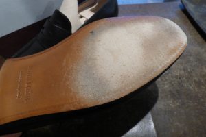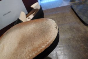 ワックスを使用し「ハイシャイン(鏡面磨き)」でつま先部を中心に光らせています。