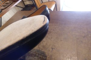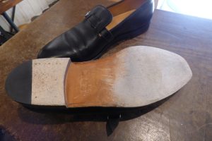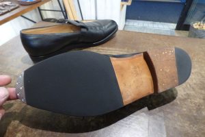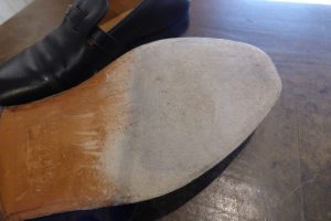 つま先部の擦り減りは「革で埋めて」厚みを戻した後、