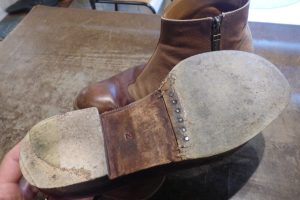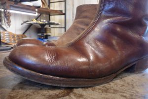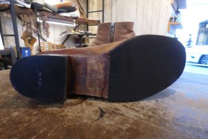 Kapital(キャピタル)サイドジップブーツの擦り減った革底の靴底補強修理