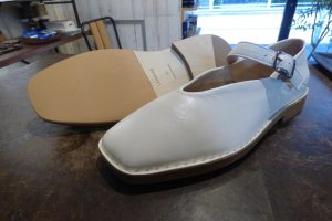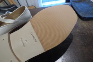 白のレザーソール面を補強します。