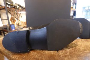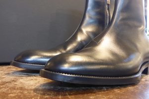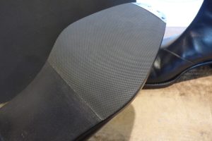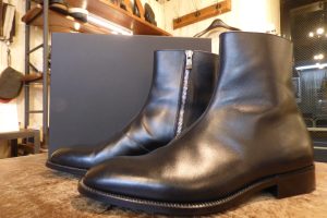 黒のサイドジップブーツで履かれる前の新品状態で靴底の補強のご依頼です。