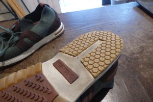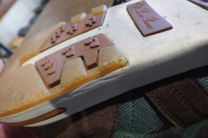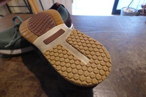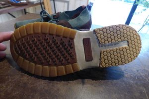 使用するにはビブラム社のラバーソール「セーフウォーキング」のアメ色です。