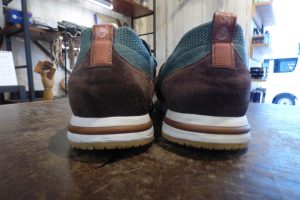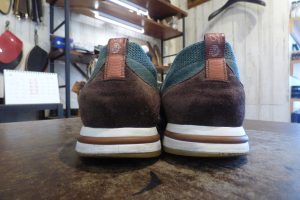 先日のブログでご紹介した「360LP FLEXY WALK」の色違いで、同じお客様が2足お持ちいただいた流れです。 先日の修理内容と少し異なるので、連日でご紹介させていただきます。 同様にカカトの修理です。