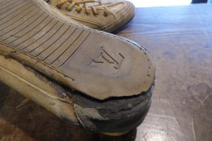 古いモデルのヴィトンで、靴底は接着のみで付いている構造です。