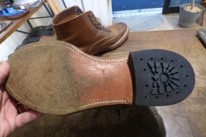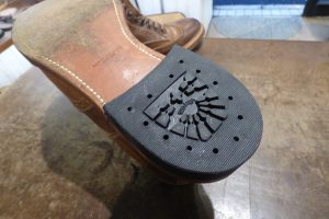 使用したのはUSビブラム社の「430ヒール」です。 違和感はありません。 元と同じブロック型ヒールなのでバランスも問題なく仕上がります。 今後は外れないように加工をし、これで安心して履いていただけます。店頭だけでなく郵送でも修理をお受けしています。
