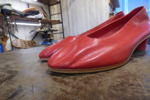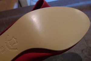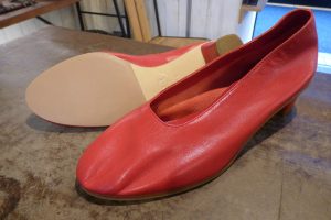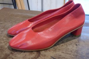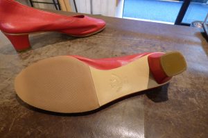 MARTINIANO(マルティニアーノ)赤パンプスをハーフラバー(裏張り)補強