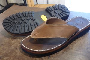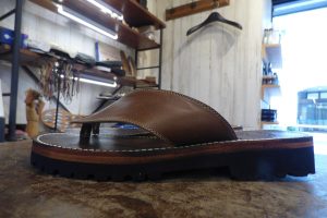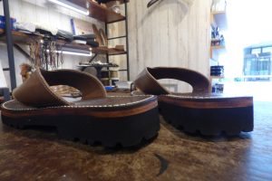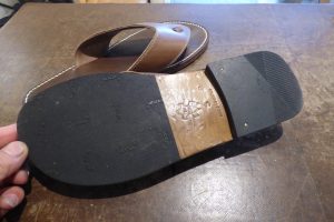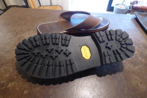 お客様は当初、同じようなタンクからのラバーソールを考えておられましたが、このサンダルにラバーソールを接着すると、しっかりと付けずに今後剥がれてきます。